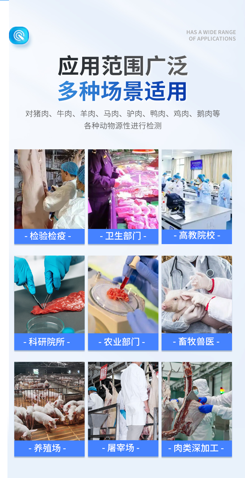 产品概述: 该仪器是一款**、便捷的食品检测设备,专为识别肉类的真假而设计。可以对猪肉、牛肉、羊肉、马肉、驴肉、鸭肉、鸡肉、鹅肉等各种动物源性进行检测。能够迅速、准确地检测肉类及肉源···