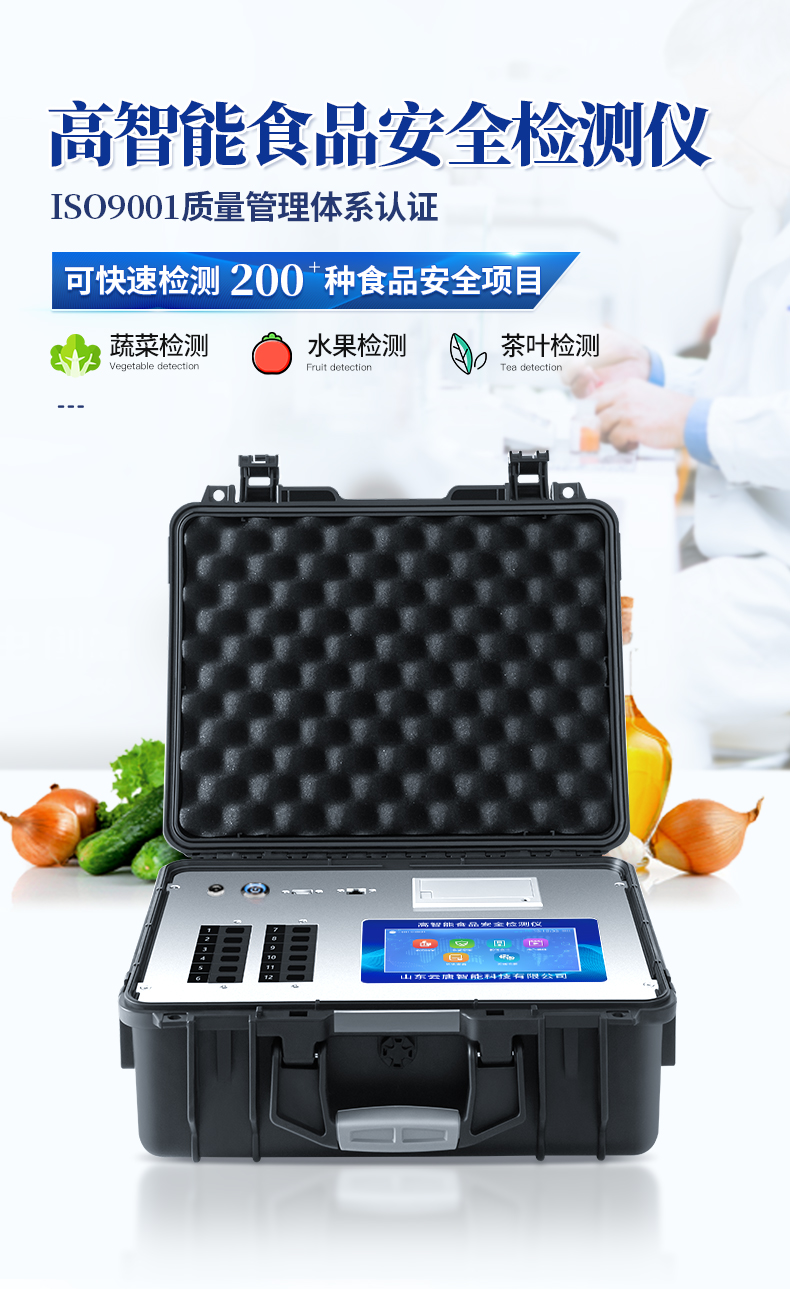 多功能果蔬肉类检测仪可快速检测几十种项目,包含各种蔬菜水果中有机磷、氨基甲酸酯类农药,病害肉诊断:肉类新鲜度、肉中组胺、挥发性盐基氮;各种肉食品中瘦肉精激素类残留等现场的定性定量检测。