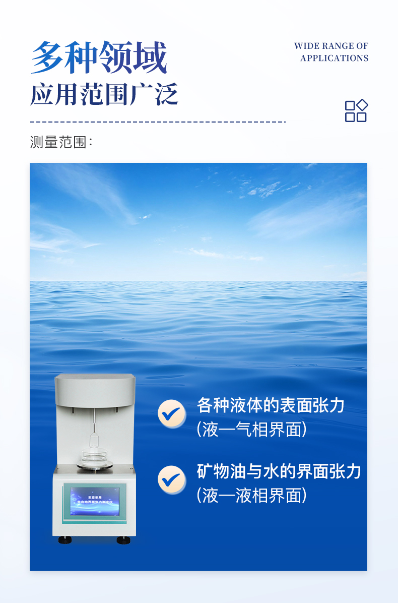 | ★ 测量方法:圆环法 | ★ 灵 敏 度:0.1mN/m | ★ 测量范围:2~500mN/m | ★ 准 确 度:±0.4 mN/m | ★ 电 源:AC220V±5% 50Hz±2.5% | ★ 功 率:50W | ★ 环境温度: 5℃~40℃ | ★ 环境湿度: ≤85% |