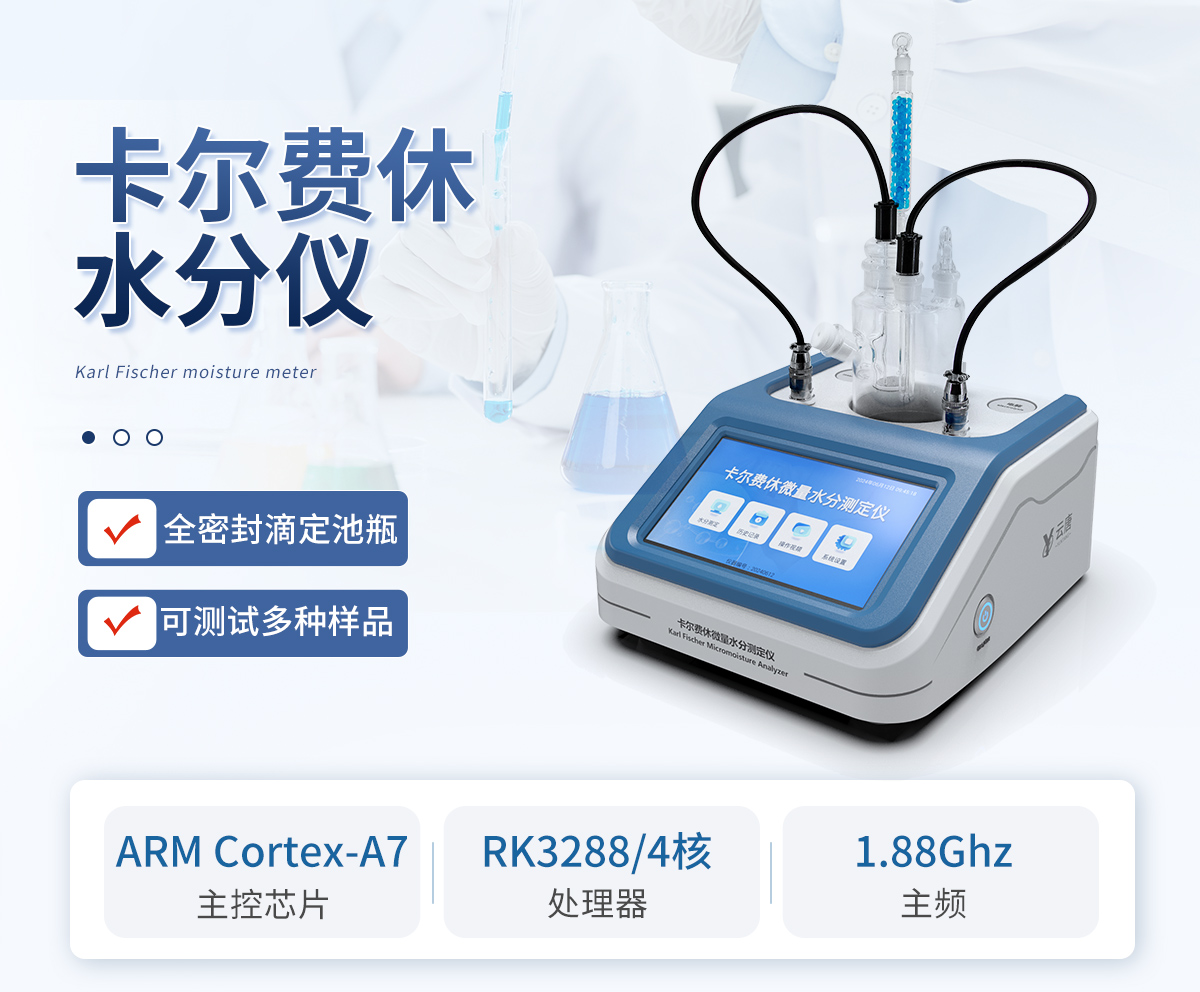 | 1.采用全新安卓系统,配置7英寸液晶触摸屏显示,人性化中文操作界面,读数直观、简单。 | 2.仪器主控芯片为ARM Cortex-A7,RK3288/4核处理器,主频1.88Ghz,运转速度更快速,稳定性更强显示方式: | 3.检测采用全密封滴定池瓶,避免试剂与人接触,杜绝环境湿度对检测的影响;检测过程中仪器自动控制,搅拌、测定60秒左右完成,可直接显示测定结果,无需人员频繁操作。 | 4.仪器内置操作视频,可直接观看学习操作方法。 | 5.仪器可以测试多种样品,循环检测,即放即检。 | 6.仪器可对样品信息自由编辑,包括:样品名称、样品编号、检测单位、检测人员、联系方式、受检单位等。 | 7.仪器可对检测样品测定信息进行设置,例如:电解电流、电解电压、微量水分含量、测定时间、百分含量、进样体积、试样密度、毛重和皮重等。 | 8.水分检测方式可根据实际需求选择体积法或重量法。 | 9.内置热敏打印机,可直接打印检测结果,并可根据需求灵活设置打印内容(二维码,样品编号、检测单位、检测人员、联系电话、受检单位、检测日期等)。 | 10.样品检测结果可通过二维码扫码查看。 | 11.检测数据可通过历史记录进行检索,通过设置检测日期、样品编号、检测单位、检测人员、样品名称、受检单位等信息查找对应数据。 | 12.仪器配备标准USB接口,免驱动安装。检测结果存储容量20万条以上,可生成Excel表格进行拷贝。 | 13.仪器配备WiFi通信模块,可上传数据至云平台,实现电脑端数据查询、浏览、分析、统计等。 | 14.仪器可定向远程更新,进行升级维护,无需返厂更新,节省时间及人力成本,避免了物流运输导致设备损坏的潜在风险。 |