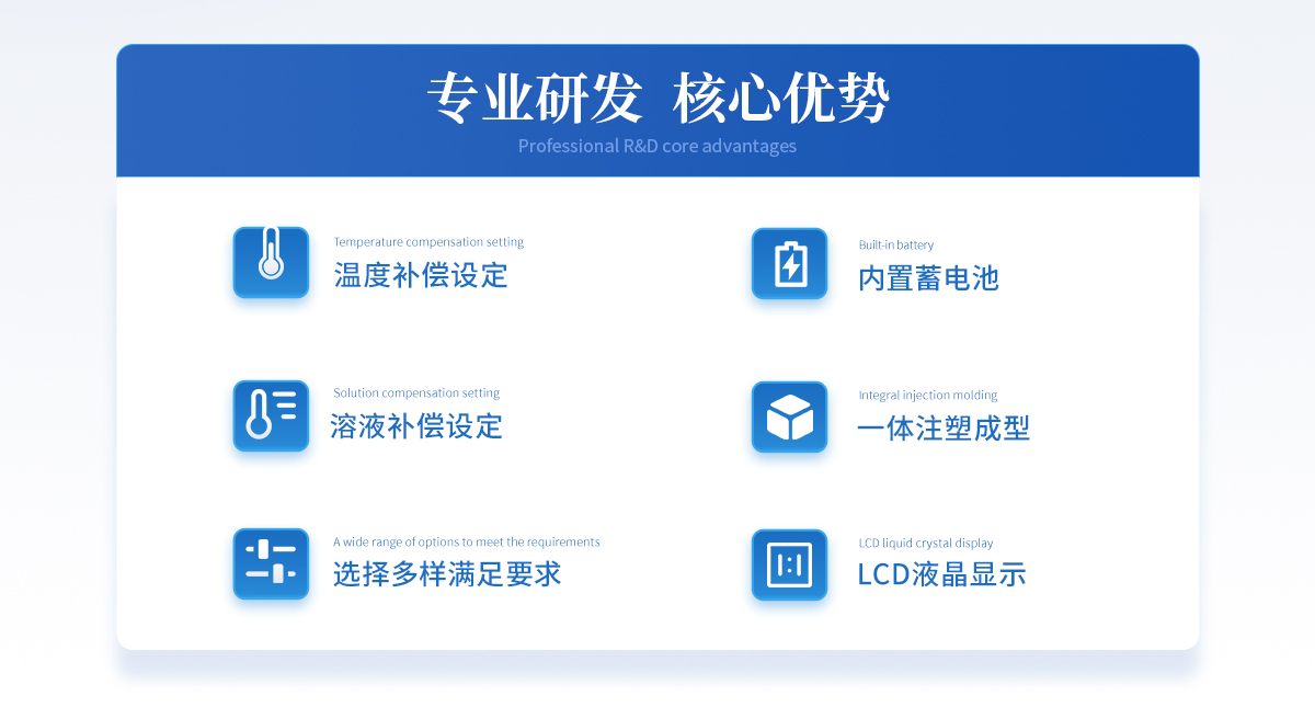 温度补偿 溶液温度可设定至0~100℃