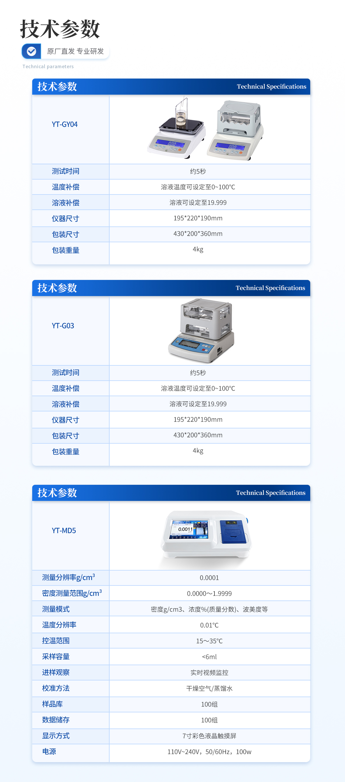 | 型号:YT-GY03 | 称重范围:0.005-300g | 称重精度:0.005g | 密度精度:0.0001g/cm3 |