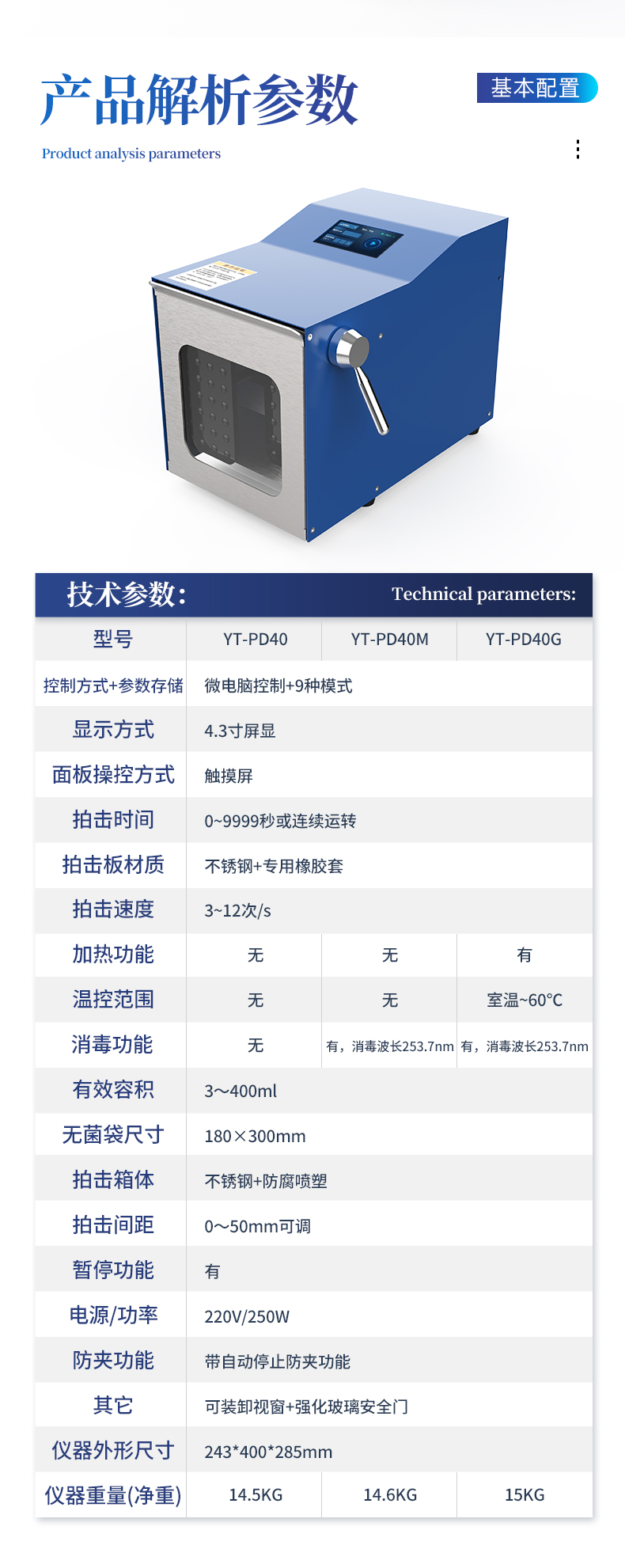 | 食品检测:肉类、乳制品、果蔬等微生物分析。 | 药品/化妆品:均匀分散有效成分或检测微生物。 | 环境科学:土壤、废水等样品的均质处理。 |