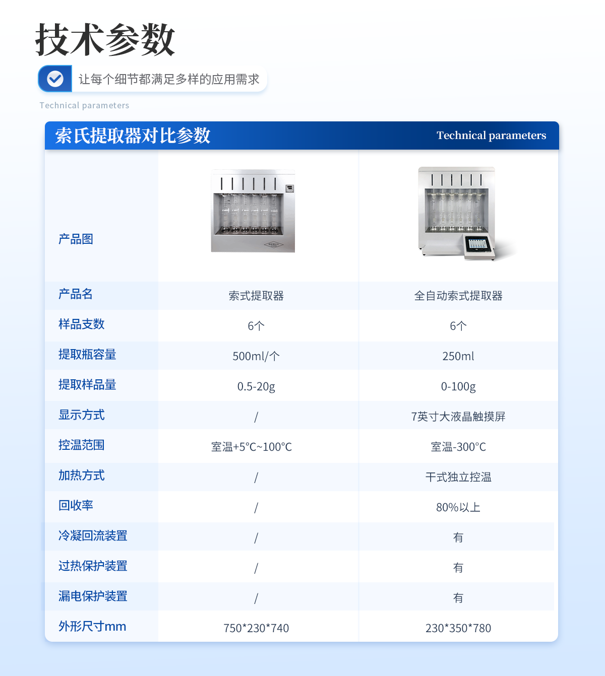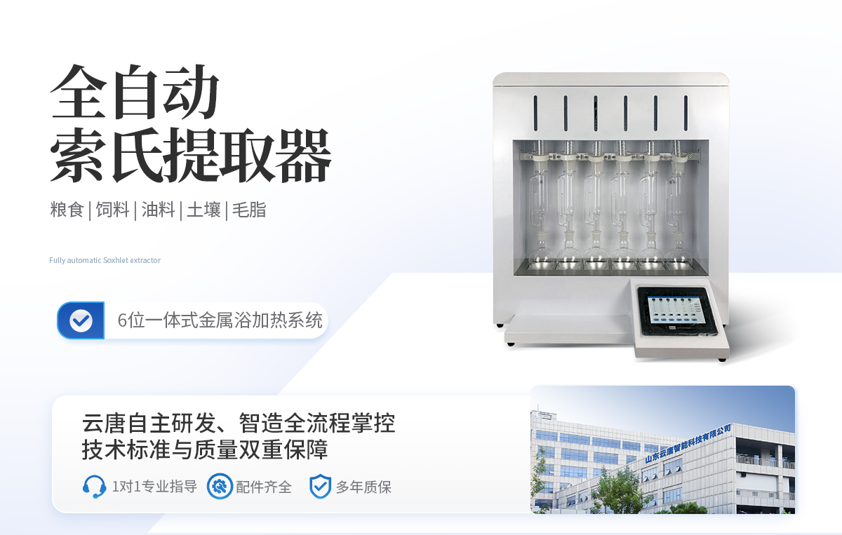 索氏提取器是从固体物质中萃取化合物的一种方法,主要用于粗脂肪含量的测定,广泛存在于提取粮食、饲料、油料、土壤,毛脂等各种样品脂肪的含量,可以作为鉴别其品质优劣的一个指标,是我国食品粮油土壤等分析优选的标准方法,我司结合客户使用要求,推出干式加热方式提取,大大加快了提取速度,节约实验时间,适用JT/T 533-2020,粒状木质素纤维吸油率、造粒剂含量及旋转黏度试验