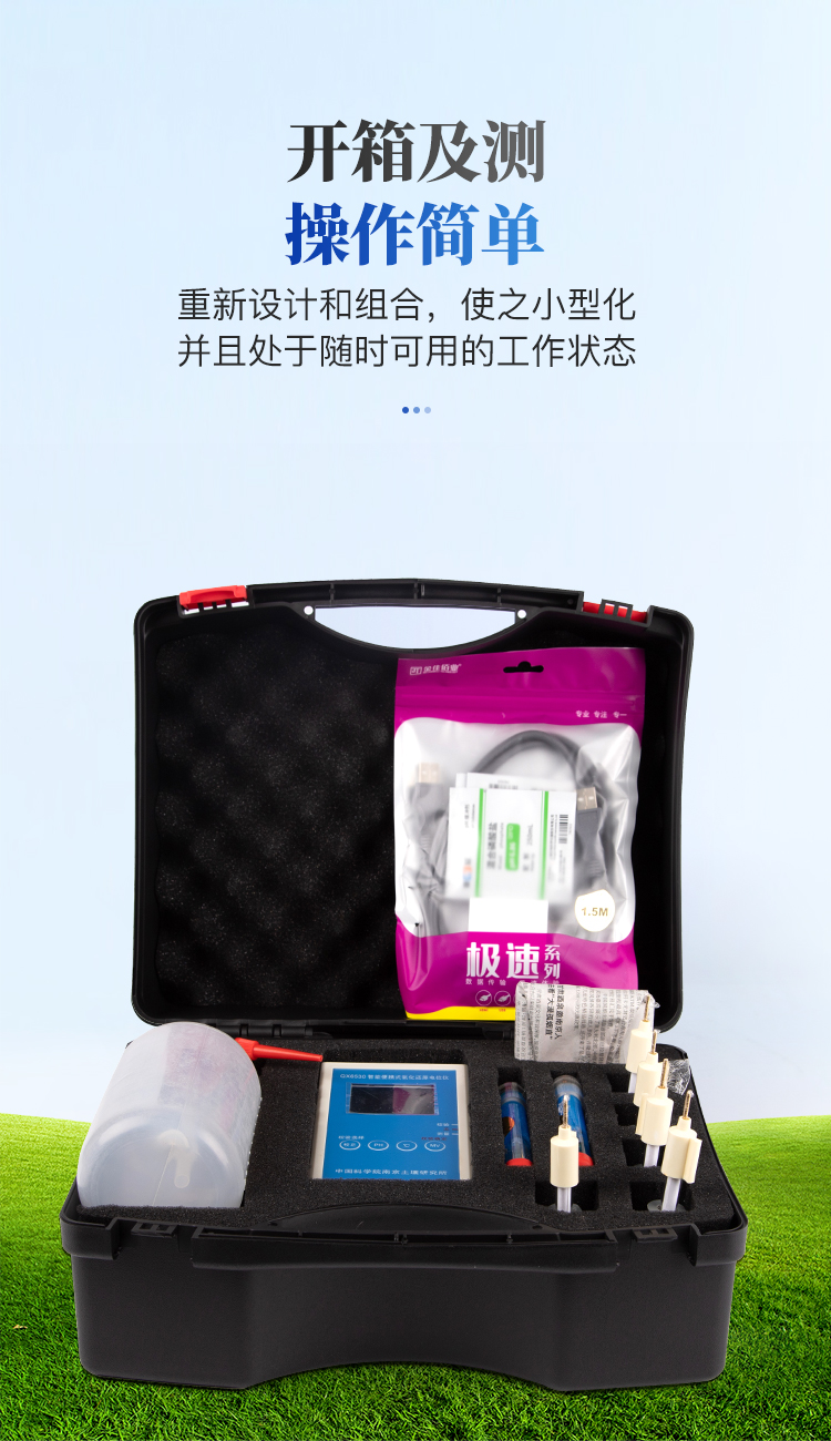 该测试仪根据土壤腐蚀与防护野外测试工作多年的经验,将所需要用的三十种五十六个各类仪表、电极、试剂、用具等加以重新设计和组合,使之小型化,并且处于 随时可用的工作状态,组装在两只小型测试箱中。便于携带到野外,现场完成与土壤腐蚀与防护有关的十个项目的分析和测试。方法合理,数据可靠,灵活便捷。