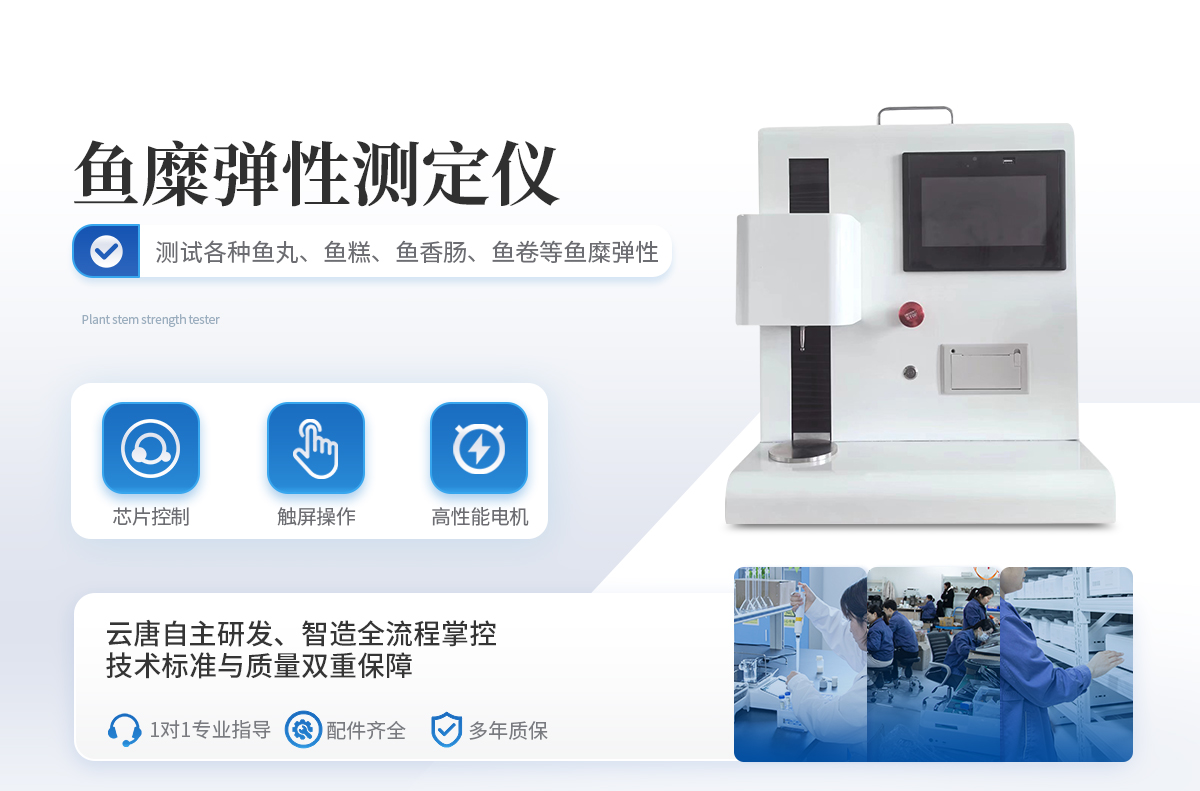 鱼糜弹性测定仪是适用于各种鱼丸、鱼糕、鱼香肠、鱼卷等鱼糜弹性的测试仪器。该机也叫质构仪,鱼糜物性测试仪,鱼糜凝胶强度测试仪.