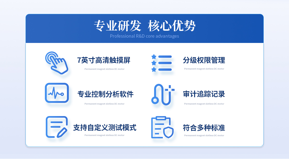 | 操作及控制系统 主机配置7英寸高清触摸屏,可以直接使用触摸屏操作质构分析仪,操作简单,结果显示 直观,适用于现场检测或快速检测。 | 连接计算机使用,配置专业控制分析软件,提供丰富的参数设置,进行更为复杂和精细 的测试控制,实时采集测试数据,完成更专业的检测及数据分析。 | 测试项目及功能 可以应用在食品、制药、乳制品、肉制品、化妆品、凝胶、糖果、果蔬、水鲜、药材、 烟草等样品的物性学分析;可以量化获取样品的硬度、脆度、嫩度、粘性、弹性、韧 性、内聚性、咀嚼性、凝冻强度、拉伸强度、破裂强度、剪切强度、抗压强度、穿透强 度、蠕变特性、松弛特性等多项物性指标。 | GMP相关要求支持 | 仪器提供分级权限管理:三级别,多用户。(用户名+密码登录) | 仪器科实现审计追踪记录:系统数据自动保存可追溯的测量结果与过程。 | 质构分析仪软件功能 软件提供十种以上测试方法:单压缩、循环测试、松弛测试、蠕变测试、全质构测试、 拉伸测试、弯曲测试、剪切测试、穿刺测试、凝冻强度测试等。系统开放测试条件参数,支持自定义测试模式。 |