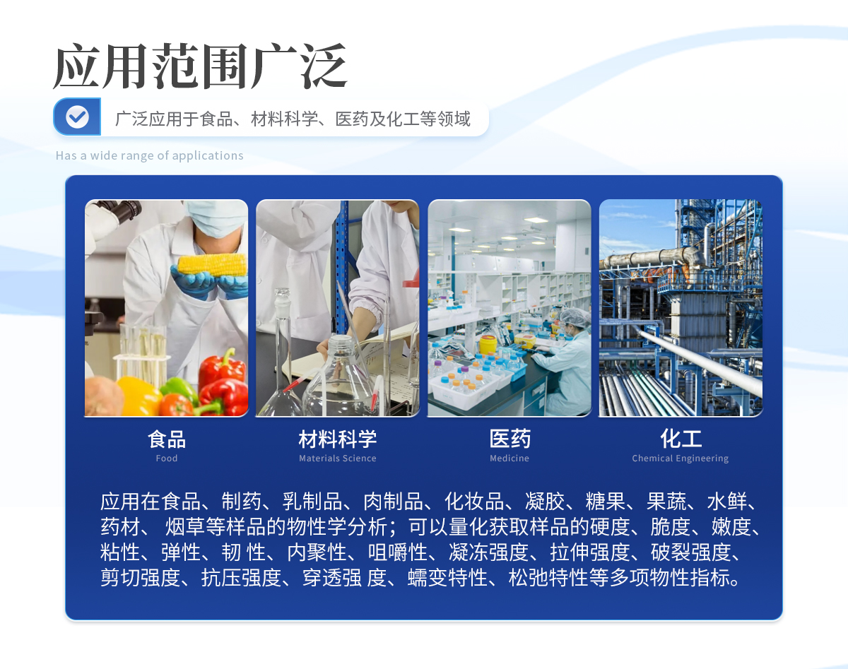 产品简介: 质构分析仪是一款集高精度与多功能性于一体的科学仪器,广泛应用于食品、材料科学、医药及化工等领域,用于全面而**地评估材料的质构特性、稠度、硬度及结构强度。该仪器通过多样化···